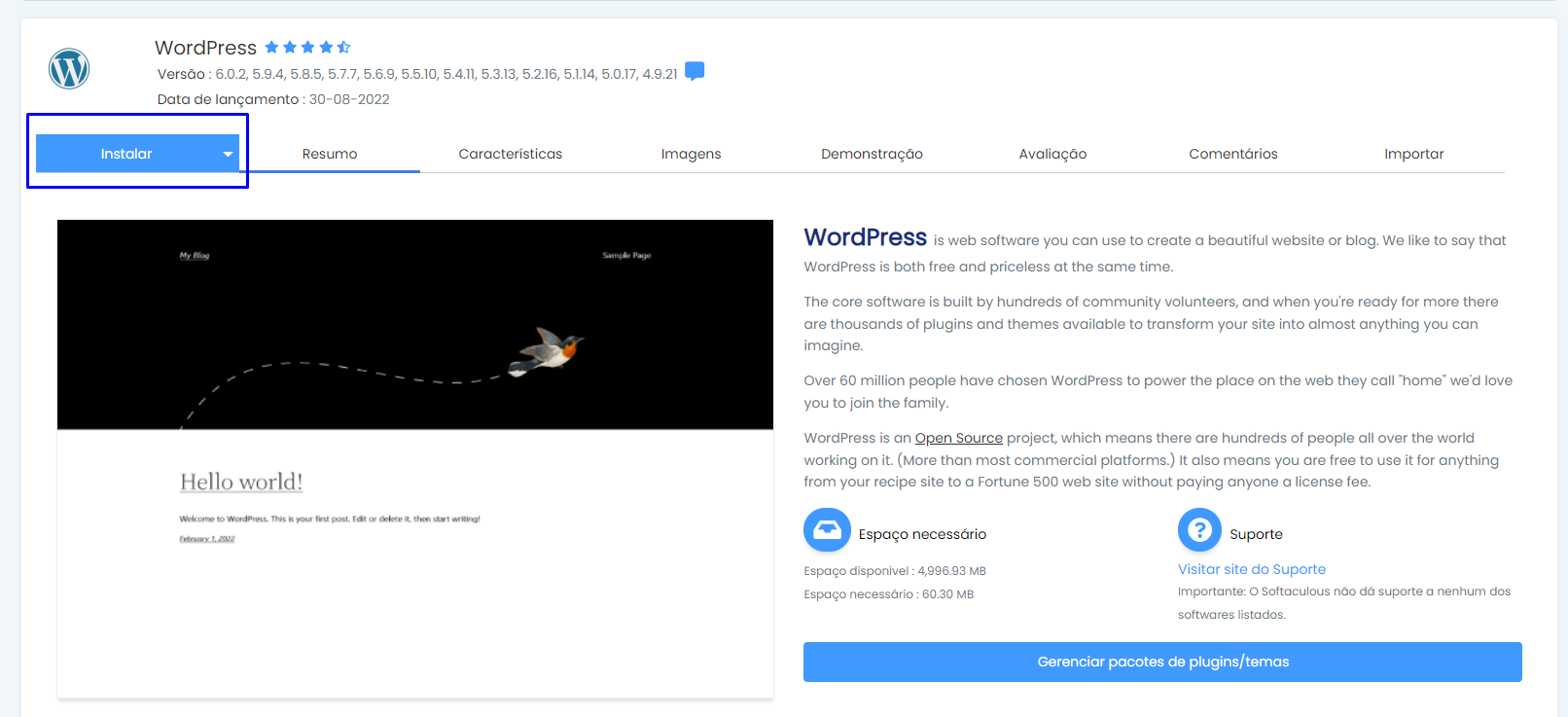 Para instalar o WordPress do jeito mais rápido possível, procure um provedor de hospedagem que possa executar a instalação por você. Alguns provedores, incluindo a Havic Host, oferecem um método fácil de instalação usando um Instalador Automático.